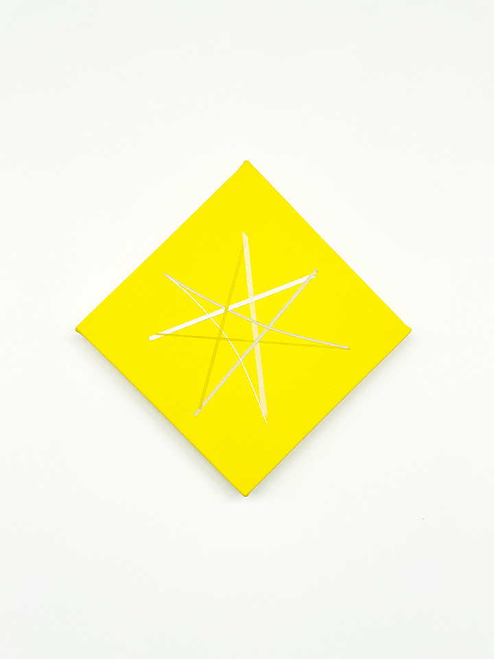 Hideyo Ohtsuki prend pour motif le ruban de masquage — l’outil utilisé pour produire des bords nets. En peignant méticuleusement ce qui est habituellement jeté, il préserve le processus au sein de l’œuvre, rendant l’achèvement lui-même ambigu.